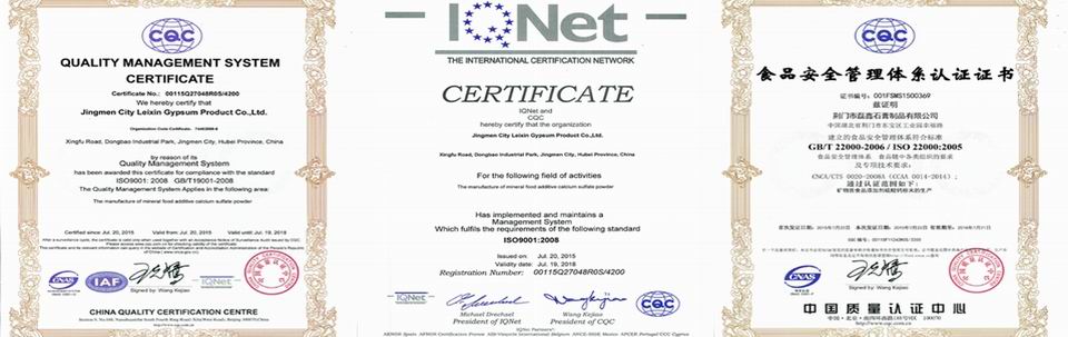 荊門市磊鑫石膏製品有限公司は石膏製品の研究、生産と販売を一體にして、一流の技術的な企業である。工場は荊門市東寶工業園に位置して、面積も25000平方メートルになります。當社は磊鑫、杰普生、凱氏蘇特という三つの商標をもって、特許も二つがある。主な製品は醫薬品グレード製品、食品グレード製品、農業グレード製品と建築材料などがある。経済的な価格と最高の品質で、當社は優秀な製造商として、世界中に多くの有名な企業と協力しています。インポートとエクスポートの権利を持って、當社の製品は韓國、日本、ロシア、ヨーロッパなどのマーケットにもよく販売されています。お客様に対して、神様のように正直します、お品質に対して、命のように頑張ります。當社と協力することはあなたの正しい選択で、共に進むことはわたしたちの同じ目標である。今後ともご指導ご支援を賜りますよう、どうぞよろしくお願い申し上げます。                  ――中國最高の石膏(硫酸カルシウム)製造商になる                             ――CGC·磊鑫石膏